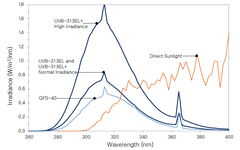 UVB-313EL (±âÁ¸ QFS-40) ·¥ÇÁ´Â ´ë±â±Ç Ç¥¸é¿¡ ¶³¾îÁö´Â ÇÞºûÀÇ ´ÜÆÄÀåºûº¸´Ù ´õ ªÀº ´ÜÆÄÀå ºûÀ» ³À´Ï´Ù. µû¶ó¼ ÀÌ ·¥ÇÁ´Â ´ÜÆÄÀå Àڿܼ± ¿µ¿ª¿¡¼ ³ôÀº ³»±¸¼ºÀ» °¡Á®¾ßÇÏ´Â ¹°ÁúÀÇ Ç°Áú°ü¸® ¹× ¿¬±¸ °³¹ß¿¡ À¯¿ëÇÕ´Ï´Ù. UVB-313-EL+ ·¥ÇÁ´Â ´õ °¡È¤ÇÑ Á¶°ÇÀÇ ´ÜÆÄÀå ¿µ¿ª ȯ°æÀÇ ³»±¸¼º ½ÃÇè¿¡ ÀûÇÕÇÕ´Ï´Ù. UVB ·¥ÇÁ¸¦ »ç¿ëÇÏ´Â ½ÃÇè °á°ú´Â Çö½Ç¿¡¼ ¹ß»ýµÇ´Â Çö»ó°ú ±«¸®°¡ ÀÖÀ» ¼ö ÀÖ´Ù´Â °ÍÀ» À¯³äÇØ¾ß ÇÕ´Ï´Ù.