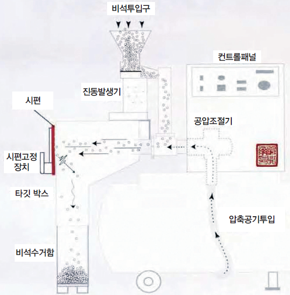 °è·®µÈ ºñ¼®À» Áøµ¿¹ß»ý±â¸¦ ÀÌ¿ëÇÏ¿© ºñ¼®ÅõÀÔ±¸·Î ³Ö¾îÁÝ´Ï´Ù. ¾ÐÃà°ø±â ÅÊÅ©¿¡¼ °ø±ÞµÇ´Â ºü¸¥ ¼ÓµµÀÇ °ø¾Ð¿¡ ÀÇÇÏ¿© Gun Assembly·Î ºñ¼®ÀÌ ÅõÀÔµÇ¸é¼ µ¿½Ã¿¡ ½ÃÆíÀ» ÇâÇÏ¿© ¹ß»çµË´Ï´Ù. ½ÃÆí¿¡ Ãæ°ÝÀ» ÀÔÈù ºñ¼®Àº ÇÏ´Ü¿¡ À§Ä¡ÇÑ ºñ¼®¼ö°ÅÇÔÀ¸·Î ¶³¾îÁö°Ô µË´Ï´Ù.