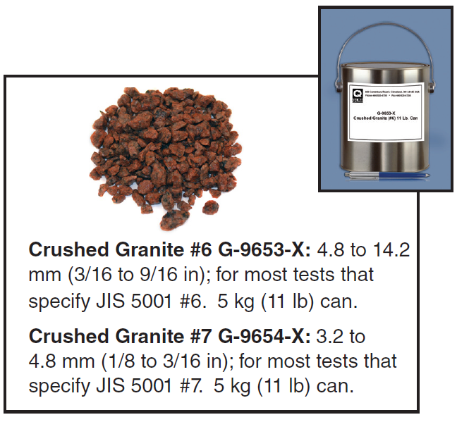 Q-Lab Àº ºñ¼®½ÃÇè(³»Ä¡ÇνÃÇè, chipping test) ¿¡¼ »ç¿ëÀÌ °¡´ÉÇÑ 5°¡Áö Á¾·ùÀÇ ºñ¼®À» Á¦°øÇÕ´Ï´Ù. ¿ä±¸ Á¶°Ç¿¡ µû¸¥ ´Ù¾çÇÑ °á°ú¸¦ À§ÇØ ¾Æ·¡ÀÇ ºñ¼®À» ÂüÁ¶ÇØ ÁֽʽÿÀ.