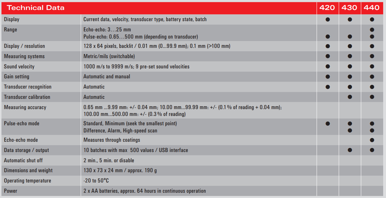 ÇѼտ¡ µé°í ÃøÁ¤ÀÌ °¡´ÉÇÑ ÃÊÀ½ÆÄ º®µÎ²² ÃøÁ¤±â MiniTest 400 Series ´Â ´Ù¾çÇÑ »ê¾÷ ºÐ¾ß¿¡¼­ »ç¿ëÀÌ °¡´ÉÇÕ´Ï´Ù. »ç¿ëÀÌ Æí¸®ÇÏ°í °¡º­¿î ÃøÁ¤±â´Â ÇöÀåÀÇ QC ºÐ¾ß³ª ºÎ½Ä ÇöÀå¿¡¼­ »ç¿ëÀÌ °¡´É ÇÕ´Ï´Ù. Steel, stainless steel, aluminium, glass ³ª ÇÃ¶ó½ºÆ½ÀÇ µÎ²²¸¦ °£´ÜÈ÷ ÃøÁ¤ÇÒ ¼ö ÀÖ½À´Ï´Ù. Pulse-echo ¸ðµå¸¦ »ç¿ëÇÏ¿© 0.65 ~ 500mm ±îÁöÀÇ º® µÎ²²¸¦ ÃøÁ¤ÇÒ ¼ö ÀÖ½À´Ï´Ù.